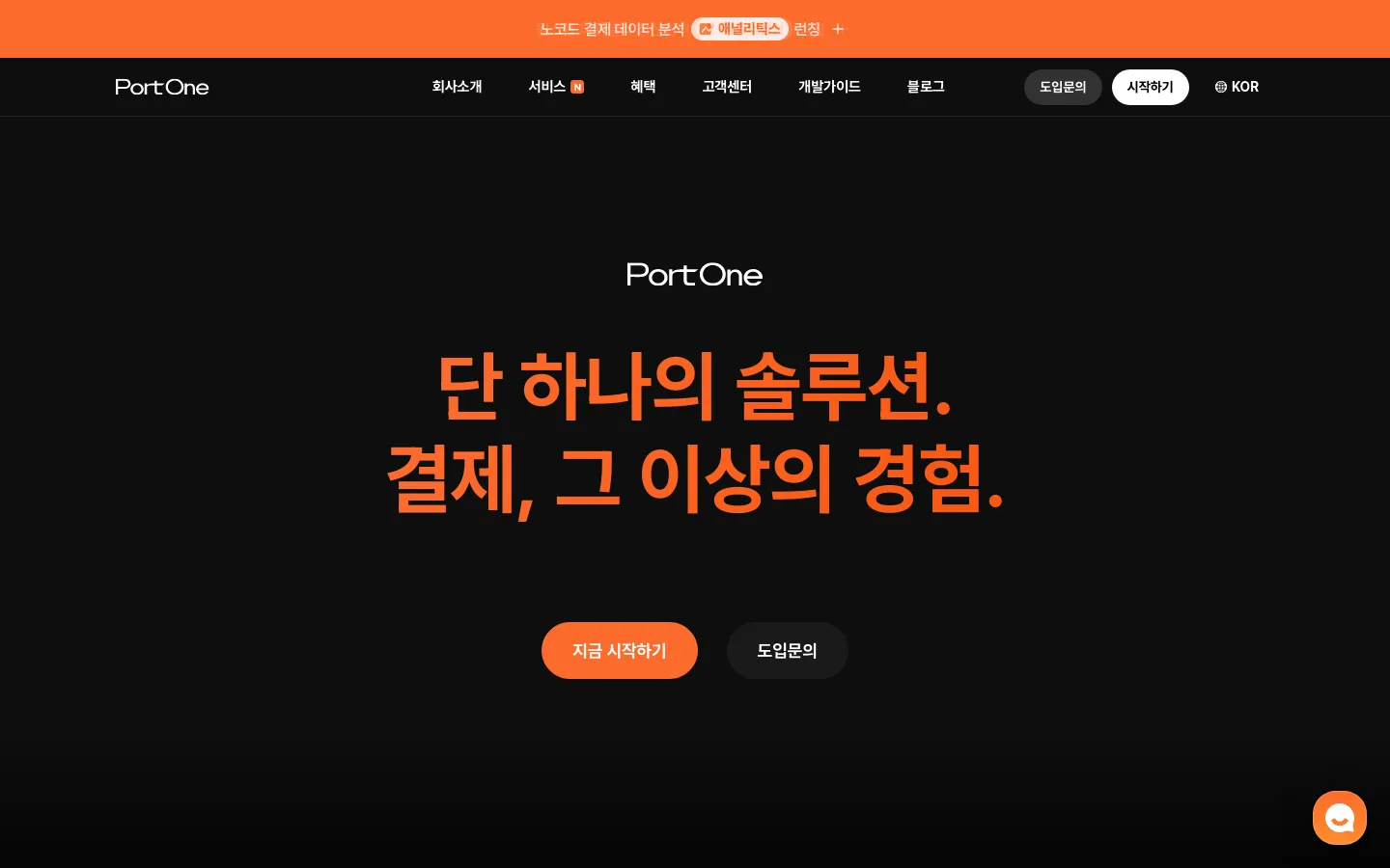 이때까지는 Solid 프레임워크와 그 생태계를 소개하는 것에 초점을 두었는데, 다음으로는 포트원 내에서 저희가 Solid를 활용하는 방법에 대해 이야기해보도록 하겠습니다. 포트원은 현재 두 프로젝트에서 Solid를 적용하여 사용하고 있는데요, 결제 브릿지 페이지와 포트원 홈페이지가 그것으로, 두 프로젝트 모두에서 SolidStart를 적용하여 사용하고 있습니다.